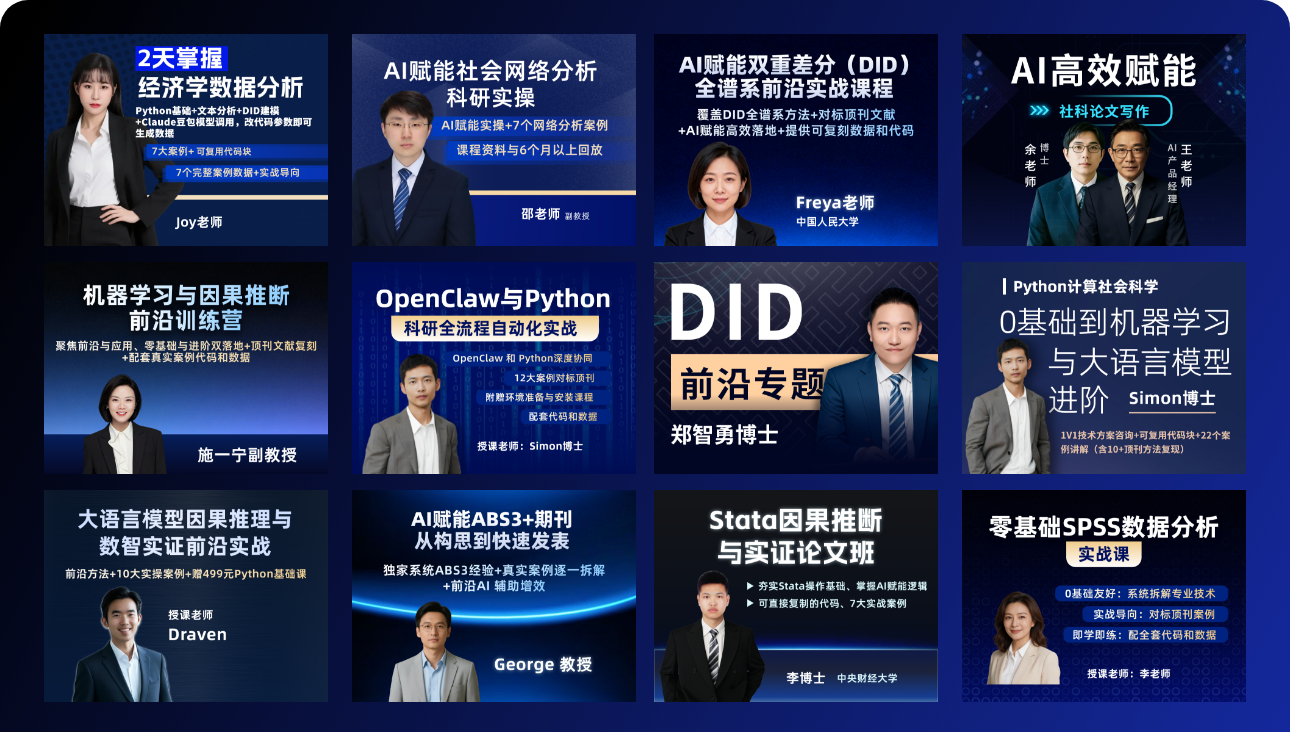 集社科信息、科研数据、代码模型、计量课程和AI工具的一站式解决方案