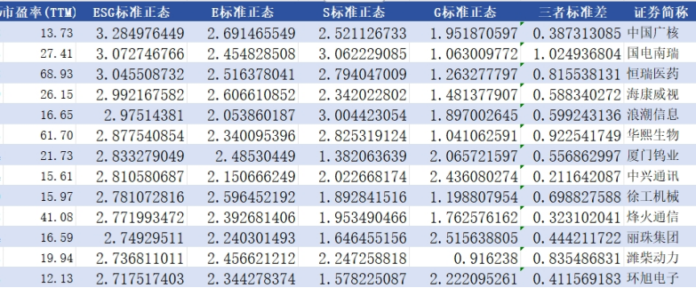 | ESG标准正态 | E标准正态 | S标准正态 |