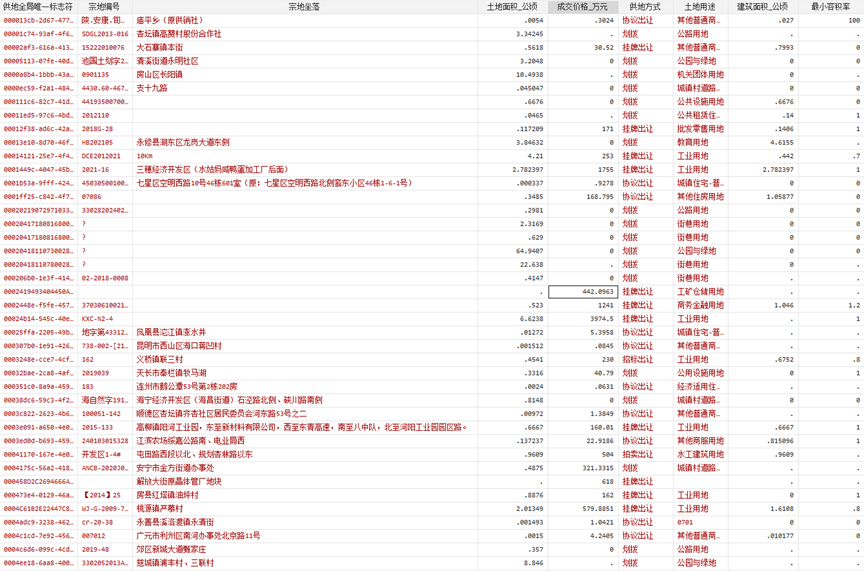 说明:因土地市场网会时常增减部分土地成交公告,所以网站上的公告数量和本次所提供的数据内容不会完全相同。同时,由于大多数地块并非结构化地址,所以地块对应经纬度可能存在一定偏差,但本团队已尽可能地提升了地理编码的准确度。