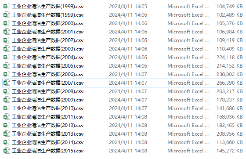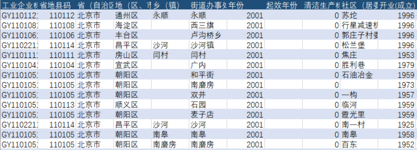 | 工业企业标识码 | 年份 | 起效年份(清洁生产标准实施) | 清洁生产标准实施(该年份实施为1,否则为0) |
