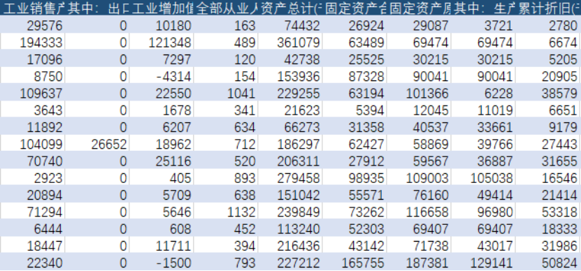 | 执行06会计准则 | 工业总产值_当年价格(千元) | 工业销售产值_当年价格(千元) | 其中:出口交货值(千元) |