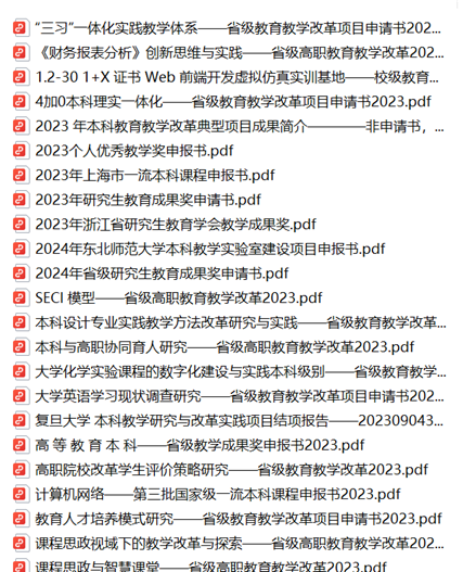 本资源展示了2023-2024年高教类教育教学改革、教学成果奖全文,部分资源如下表: